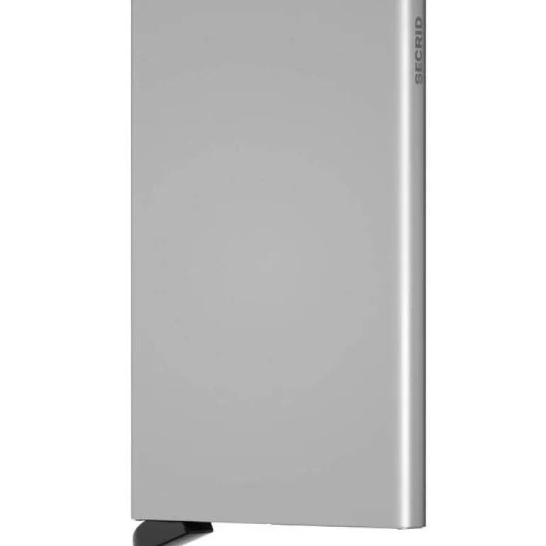 Secrid kortholder i sølvfarget aluminium med patentert skyvesystem som gjør det enkelt å få tak i akkurat det kortet du trenger ved hjelp av et lett trykk på utløserknappen. Kortholderen beskytter kortene fra å bøyes eller knekke , og sikrer kortene mot tyveri ved at den blokkerer for trådløs avlesning. Med plass til 4-6 kort.Secrid har stor suksess med sin kortholder som ble lansert i 2009,og mye av dette skyldes en unik kombinasjon av moderne produksjonsteknikker , godt kvalitesskinn og et gjennomtenkt design.Selve kortholderen er i aluminium og dette gir den lav vekt , men beskytter også kortene mot å bøyes eller knekke , og den sikrer kortene mot tyveri så lenge de er inni kortholderen.(RFID sikker ; radio-frequency identification).Ved hjelp av en liten knapp skyves kortene ut av holderen slik at man enkelt får tak i det kortet man skal bruke.Secrid Miniwallets er et stort spekter av kortholdere med skinnomslag som gjør at kortholderen også fungerer som en liten lommebok der man kan oppbevare sedler ,billetter og annet.Hver kortholder rommer 4-6 kort ; 4 kort med opphøyet preging og opp til 6 kort uten preging.
