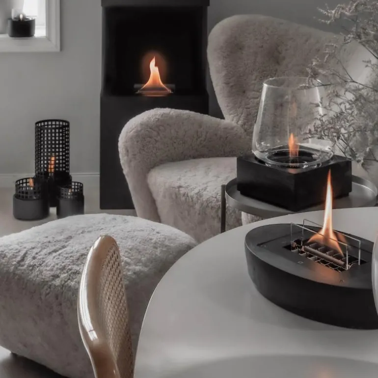 Carnation-lykten fra TenderFlame er designet for å bli et naturlig midtpunkt uansett plassering, med sin elegante ovale form og moderne betong-look. Den levende flammen gir både en visuell varme og en behagelig lun temperatur på omtrent 1100 watt, som gjør den perfekt til sene kvelder på terrassen så vel som til bruk innendørs.