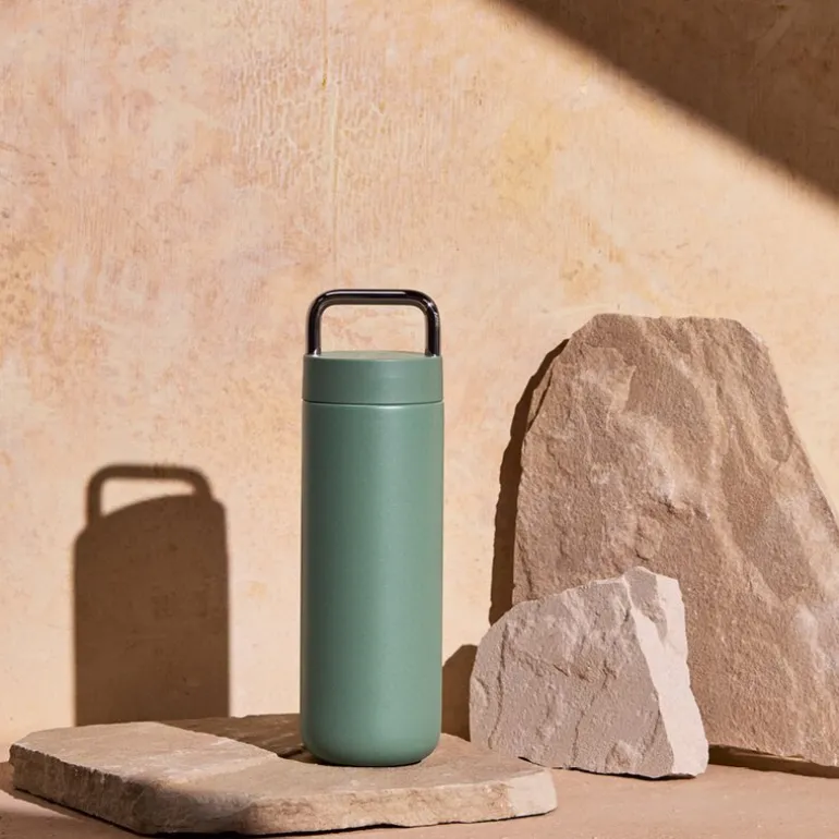 Carter Carry Desert Capsule termokopp på 590 ml i fargen smoke green fra Fellow er den ideelle løsningen for minimalister som elsker store kaffedrikker og setter pris på elegant design og funksjonalitet. Denne store termokoppen kombinerer et stilig utseende med et høyt isolerende design, perfekt for å ta med deg kaffe ut på tur. Innsiden er belagt med True Taste keramisk belegg, som bevarer kaffens originale smak uten at den påvirkes av materialene, noe som gir en ren og autentisk smaksopplevelse hver gang.