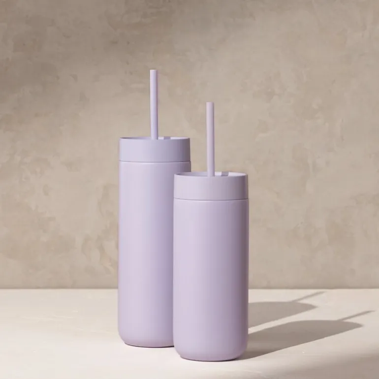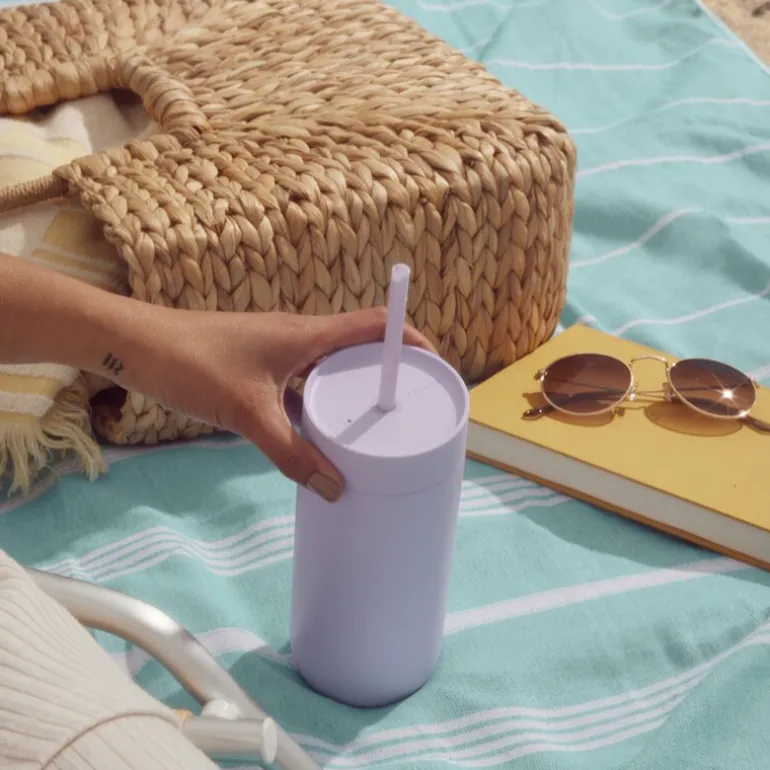 Carter Cold Desert Capsule tumbler med sugerør på 590 ml i fargen peri twinkle fra Fellow er den ultimate løsningen for deg som elsker å nyte kalde drikker med stil, enten du er på stranden eller drømmer om den. Denne tumbleren er perfekt for kaldbrygg, cocktails eller kombucha, og gir deg luksusen av å ta med deg favorittdrikken din uansett hvor du slapper av.