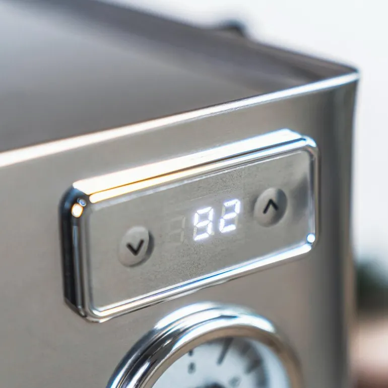 Casa Bar PID stål fra La Pavoni er en semi-profesjonell espressomaskin som kombinerer elegant italiensk design med avansert teknologi. Utstyrt med en robust stålramme og en enkel messingkjele på 0,3 liter, leverer den enestående ytelse for kaffeentusiaster. Maskinen har et PID-system som sikrer perfekt temperaturregulering for konsistent brygging. Med en profesjonell filterholder på 58 mm og en Cool Touch-dampstav, kan du enkelt lage alt fra espresso til silkemyk melkeskum, akkurat som på en kafé. Den store vanntanken på 3 liter og avtakbare komponenter gir brukervennlighet og enkel rengjøring.