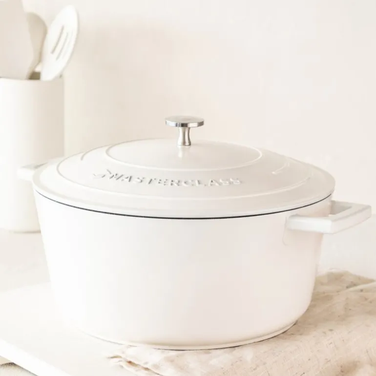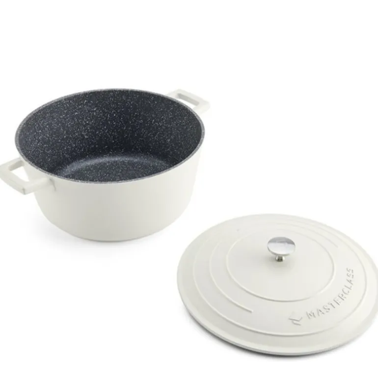 Den kremfargede gryten har et stilrent design og er lett å rengjøre, enten ved skylling eller i oppvaskmaskinen. Med en kapasitet på 5 liter, er dette en romslig og pålitelig gryte som passer til både hverdagsbruk og spesielle anledninger. MasterClass gir livstidsgaranti og en femårig non-stick-garanti for trygg og langvarig bruk.