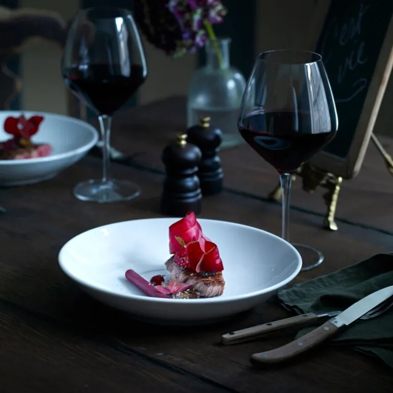 Cecil-tallerkenen, med sin avrundede form og elegante hvite farge, er perfekt for en rekke retter. Enten det er suppe, frokost eller andre kulinariske kreasjoner, vil denne tallerkenen forsterke serveringen og tilføre tidløs eleganse til ditt moderne bord.