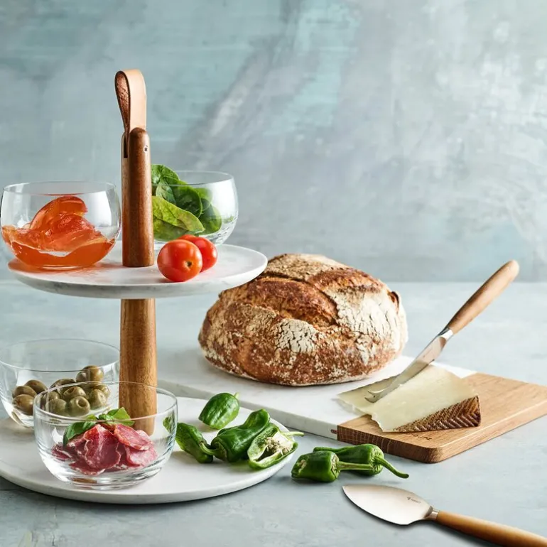 Celeste ostebrett fra Modern House kombinerer naturlig eik med elegant kunstmarmor, og blir et vakkert blikkfang på ethvert bord. Med målene 35 x 22 cm har du god plass til å servere ost, kjeks, spekemat eller småretter på en stilfull måte.