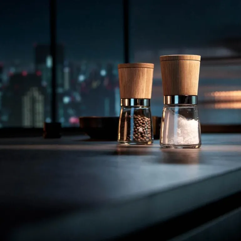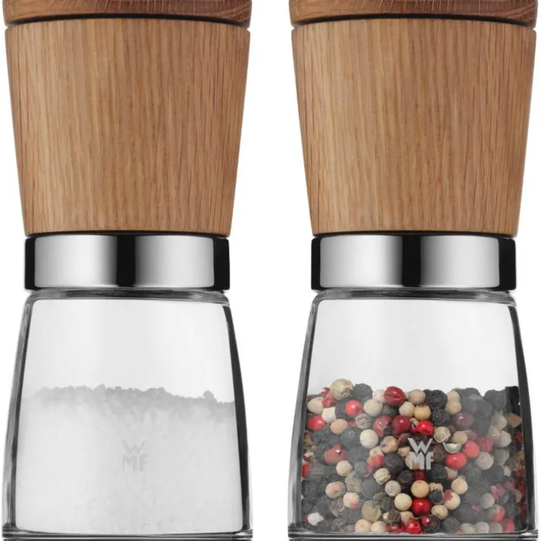 Krydder gir oss sin fulle aroma når de er nykvernet, fordi de frigir sine eteriske oljer når de kvernes. Derfor har WMF utviklet Ceramill-krydderkverner med pepperkverner som forbilde og også utstyrt dem med en langtidsholdbar keramisk kvern. Krydderkvernen kan innstilles trinnløst med et innstillingshjul fra fin til grov for å få ønsket resultat – alt etter krydderne. Krydderkvernen har en beholder av glass så du lett kan se hvor mye det er i. Den er lett å fylle og rengjøres i oppvaskmaskinen. Overdelen fås etter eget valg i Cromargan® rustfritt stål 18/10, eik eller kvalitetsplast. På alle krydderkvernene sitter kvernen øverst og etterlater ingen spor av krydder på bordet. Dessuten beskytter et aromalokk kvernhodet og bevarer samtidig kryddernes aroma.