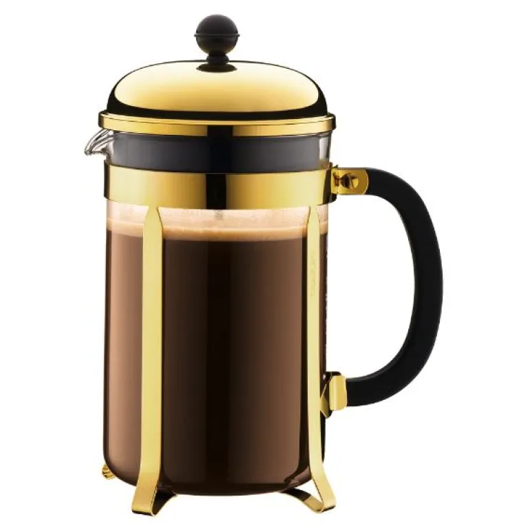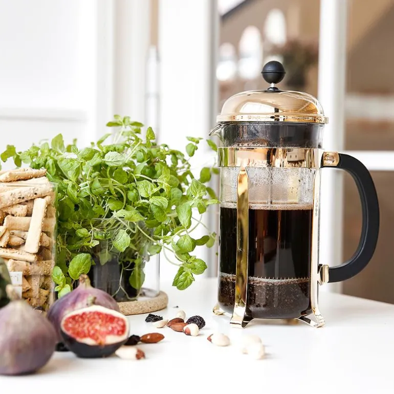 Oppdag kunsten ved det perfekte press med CHAMBORD presskannen. Presskannesystemet er elsket av kaffe-entusiaster over hele verden for dens enkle pressing og rene smak. Og CHAMBORD er den originale og beste presskannen.CHAMBORD er et bodum-ikon, og synonymt med Bodum-navnet. Det originale designet daterer tilbake til førkrigsperioden når italienske Attilo Calimani utviklet det grunnleggende prinsippet. Bodum-grunnlegger Jørgen Bodum begynte å jobbe på sin versjon av presskannen på 1970-tallet, men det var oppkjøpet av Melior-Martin i 1991 – et selskap som produserer en kuppelformet presskanne – som ledet til utviklingen av den klassiske CHAMBORD vi kjenner og elsker i dag.CHAMBORD er en sann original med et tidløst design, og er produsert med samme utmerkede håndverk som dens tilhengere over hele verden forventer. Med sin miljøvennlige pressemetode, representerer presskannesystemet Bodums kjerneverdi: at vi bør make taste, not waste.Hovedfunksjoner og -fordelerIkonisk presskanne som bringer ut den fulle smak og aroma fra ditt press.Karaffelen er laget av flekkfri, varmebestandig borsilikatglass som ikke endrer eller hindrer kaffens naturlige smak.Rammen og lokket er laget av holdbart rustfritt stål som har undergått flere forkrommingprosesser for å oppnå en holdbar, skinnende overflate som tåler flere år med bruk.Håndtaket er laget av polypropylen med en matt overflate som gir et komfortabelt grep når du serverer og bidrar til den klassiske kvaliteten på designet.Stempel i rustfritt stål hindrer kvernede bønner fra å slippe løs når kaffen helles.Mer miljøvennlig enn mange andre metoder for kaffepressing – ingen papirfilter eller plastkapsler behøves.Enkel å bruke og enkel å vaske.Bruk og vedlikeholdPresskannen er den enkleste måten å presse fyldig, smaksrik kaffe.Plasser CHAMBORD på et flatt underlag, hold godt i håndtaket og dra stempelet opp og ut av karaffelen.Tilsett én rund teskje eller én Bodum-skje med grovt kvernet kaffe for hver kopp/0,12 l vann.Hell varmt vann i karaffelen (omtrent 92-96 ºC), men la det være minst 2,5 cm klarning til toppen, og rør med en plast- eller treskje.Plasser stempelet på toppen av kannen og vri lokket så tuten er lukket for å holde på varmen.La stå i fire minutter for å presse og før så stempelet sakte nedover. Snu lokket for å åpne hellepipen og skjenk deg en herlig kopp kaffe.Vask i varmt vann med såpe før første bruk og tørk grundig.*Alle kaffe- og tekannene våre er målt i europeiske kopper: 1 kopp = 0,12 liter.Bodums visjon er ren og enkel. Bodum har som mål å bringe høykvalitets kaffe- og teløsninger og husholdningstilbehør til alle, i tråd med dine verdier. Bodum innoverer for å skape flotte design til rimelige priser basert på Bodums veiledende prinsipp om at form følger funksjonalitet, samtidig som Bodum holder øye med bærekraft, miljøansvar og respekt for velferden til sine ansatte, Bodums lokalsamfunn og planeten vår.God design trenger ikke være dyrt, Peter Bodum.