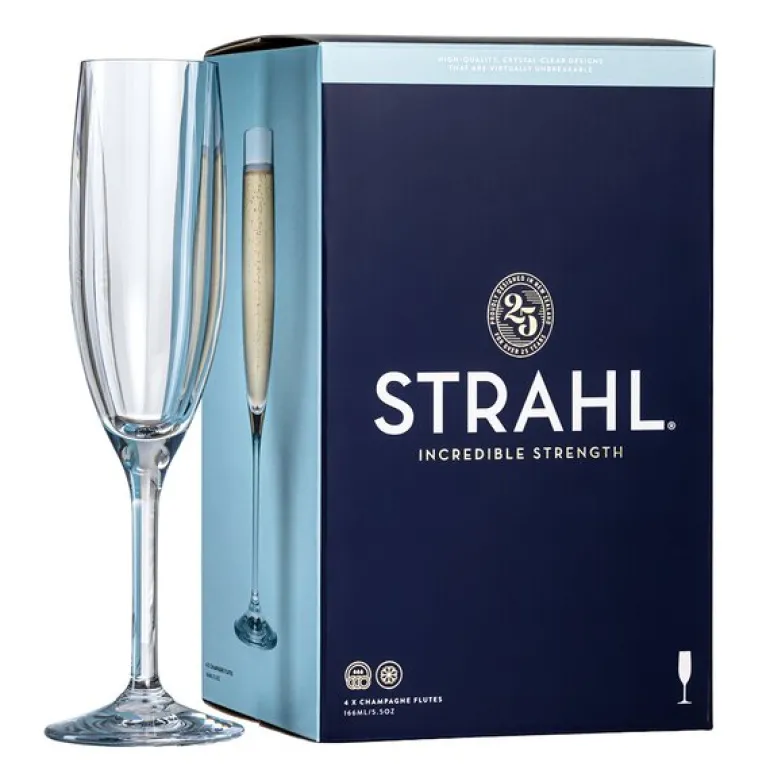 Champagneglass 16,6 cl 4 stk i polykarbonat fra Strahl gir deg stilen til tradisjonelt glass i en uknuselig og trygg utgave. Glassene leveres i elegante gaveesker og har håndpolerte skjøter som gir en ren og eksklusiv finish. Det ideelle valget for både hverdag og fest.