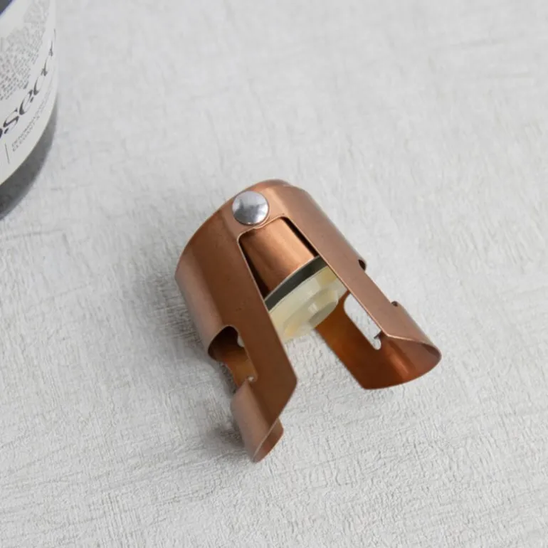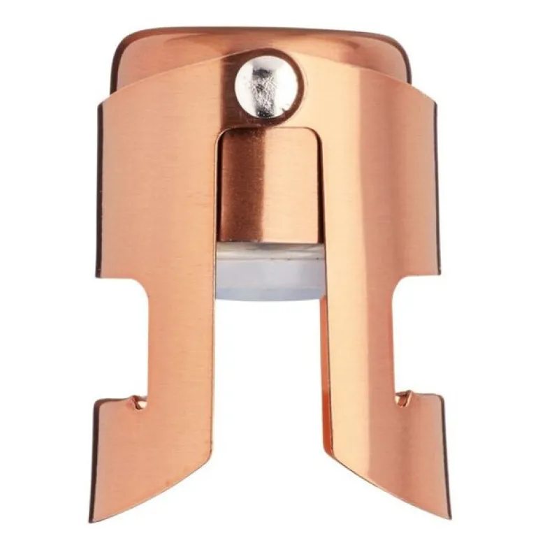 Denne elegante champagnestopperen fra BarCraft er designet for å bevare de livlige boblene og den utsøkte smaken av musserende vin, samtidig som den tilfører et luksuriøst preg til hjemmebaren din. Stopperen, som måler 4 cm, er laget med en stilfull kobberfinish som både er praktisk og estetisk tiltalende. Takket være en lufttett silikonpropp og hengslede klemmer, forsegles flasken effektivt, slik at boblene bevares og oksidasjonen forsinkes. Dette gir deg friheten til å nyte vinen i ditt eget tempo, enten det er over en kveld eller flere dager. Champagnestopperen er et uunnværlig verktøy for vinelskere som ønsker å holde drikken frisk, og den fungerer like godt til Bollinger som til en sprø cava. Perfekt til enhver anledning der du vil bevare den friske smaken og luksuriøse opplevelsen av musserende vin.