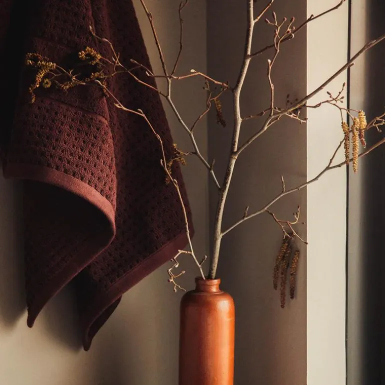 Frisk opp badet med fine, myke håndklær i en varm, sjokoladebrun nyanse. De ensfargede Check-håndklærne har et svakt mønster og er i 100 % økologisk bomull, så du kan tørke deg med god samvittighet. Håndkleet er OEKO-TEX®-merket og GOTS-sertifisert. Tåler vask på 60 °C. Fås også i størrelsene 50 x 100 cm. Finnes også i basisfargene hvit, grå, hudfarge, mørkegrønn, mørkeblå og mørkegrå.