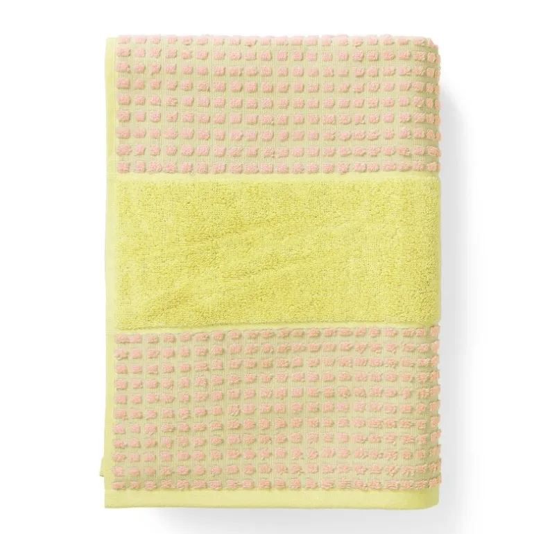 Check håndkle på 70×140 cm i gul/rosa fra JUNA gir badet ditt et energisk og oppfriskende preg. Den myke teksturen og de små, vevde rutene skaper en behagelig følelse mot huden, enten du bruker det etter et bad eller henger det som en dekorativ detalj. Fargekombinasjonen av gult og rosa tilfører et glødende og optimistisk uttrykk til baderommet.