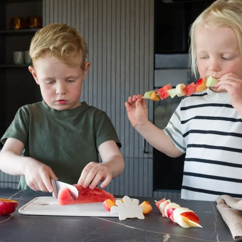 Med Chic Kids skjærebrett og kniv fra Modern House får barna sitt eget sett for trygg og morsom matlaging. Settet består av 3 deler i krem og brun – perfekt tilpasset små hender og stor nysgjerrighet.