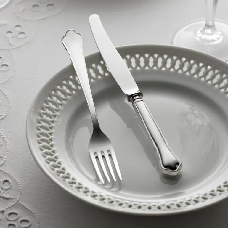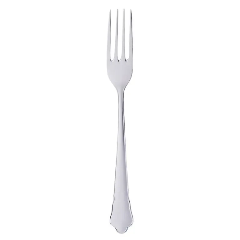 Chippendale lunsjgaffel 17,8 cm 830 fra Gense. Chippendale er opprinnelig navnet på en møbelstil i 1700-tallets rokokko, oppkalt etter møbelsnekkeren Thomas Chippendale. Stilen kjennetegnes med den fiolinlignende formen på for eksempel stolrygger, og det er den samme formen som kommer enkelt til uttrykk i sølvbestikket Chippendale. Avhengig av hvordan du kombinerer det kan bestikket være både overdådig og enkelt. Design: Studio GAB