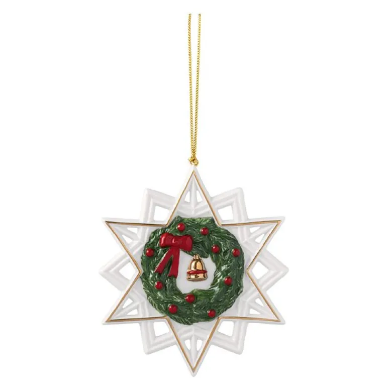 Christmas Classic juletrepynt stjerne 10 cm fra Villeroy & Boch er en elegant juletredekorasjon som tilfører tradisjonell juleglede til hjemmet ditt. Dette vakre hengeornamentet er laget av førsteklasses porselen og prydet med 18 karat gull, noe som gir en tidløs og luksuriøs følelse. Det nostalgiske designet med årstall gjør det til en minneverdig dekorasjon som passer perfekt på juletreet, eller som en unik gave til noen du setter pris på. Den kan enkelt rengjøres for hånd, slik at den kan bevares og bringe glede år etter år.