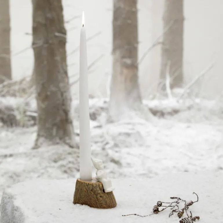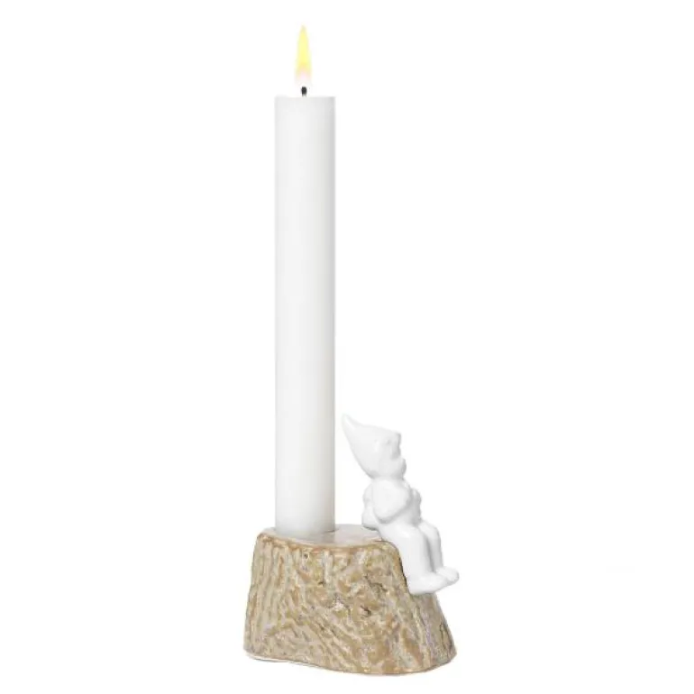 De dekorative porselensfigurene i Christmas Tales kolleksjonen er fulle av julemagi. De er inspirert av gamle julefortellinger, og hver av dem forteller en historie med elementer fra den vakre nordiske naturen. Formerne er skapt ved avstøpninger fra naturens overflater og trestubber, hvilket igjen skaper en fin kontrast til de stilistiske figurene. Julen er ofte en tid med reiser og besøk til våre kjære, og nissegutten er er klar for nye eventyr med sin lille rygsekk. Tenn et lys for hans reise.