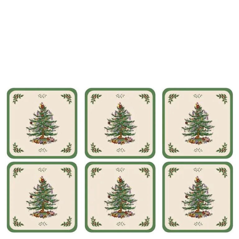 Skap ekte julestemning helt ned til detaljene med dette settet med seks Christmas Tree glassbrikker fra Pimpernel. Med Spodes ikoniske juletremotiv, rammet inn i klassisk grønt på hvit bakgrunn, gir disse underlagene en tidløs og festlig atmosfære til borddekkingen.