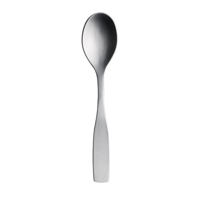 Citterio 98 kaffeskje 13,5cm. Bestikket viser dristig, særegen design og balanserte proporsjoner. Det mattbørstede, rustfrie stålet etterlater ikke vannmerker eller fingeravtrykk. Citterio 98 har brede, flate håndtak som smalner på midten, noe som gjør det lett å passe til hver hånd. Holdbar for å tåle daglig bruk. Gir en enkelt eleganse til både formelle og uformelle anledninger. Tåler vask i oppvaskmaskin.