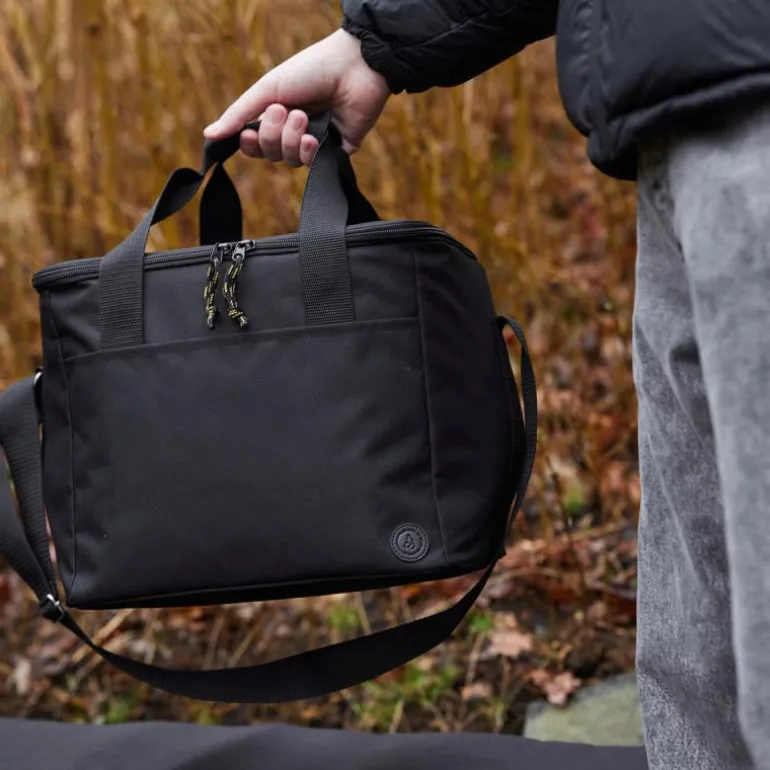 City kjølebag stor med yttermateriale i sort rPET er klassisk stilig og praktisk, men føles mer luksuriøs og sportigere enn vennene på markedet. I tillegg er den praktisk med både bærehåndtak og justerbar skulderstropp. Detaljer i kontrasterende farger forsterker det gjennomtenkte designinntrykket. En kul veske for alle anledninger! Rommer 20 liter. Designstudio Sagaform.