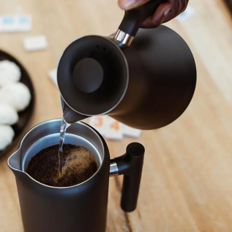 Kuren for den vanlige kafetieren. Claras unike vakuumisolerte vegger opprettholder den ideelle bryggetemperaturen for optimal ekstraksjon og holder kaffen varm for andre og tredje kopper, mens den forbedrede mesh-filtreringen gjør at de smaker like glatte og siltfrie som den første. Uanstrengt å bruke – bare fyll opp til forholdslinjene, rør om – og med et nonstick-interiør som er en drøm å rengjøre, alt i en slående og bruddsikker design: Clara er din evige French Press.