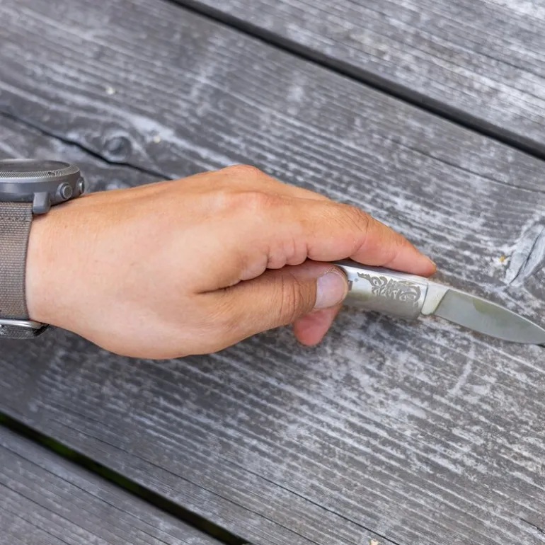 Den elegante utformingen er inspirert av gamle lommekniver, og passer perfekt i lommen for daglig bruk – enten du er hjemme, på jobb eller ute på eventyr.