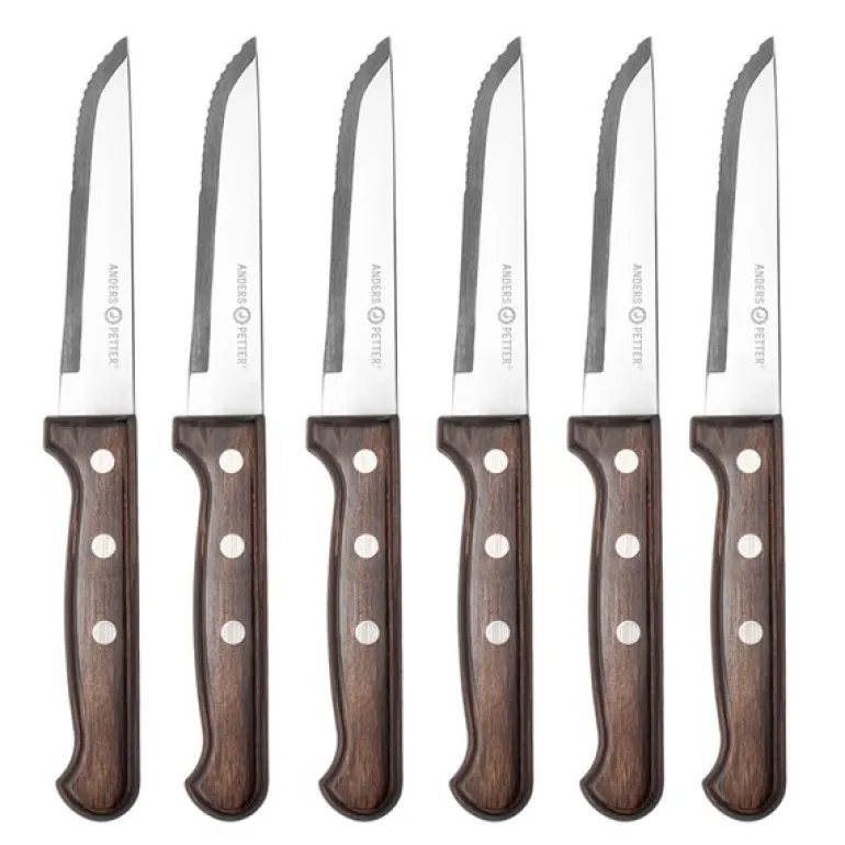 Classic biffkniv 6 stk natur/blank fra Anders Petter er designet for å gjøre oppskjæring av kjøtt enkelt og presist. Knivbladene i rustfritt stål gir enestående skarphet og holdbarhet, mens håndtakene i polywood sørger for et komfortabelt og sikkert grep under bruk. Settet kombinerer funksjonalitet med stil, og er perfekt for både hverdagsbruk og spesielle anledninger.
