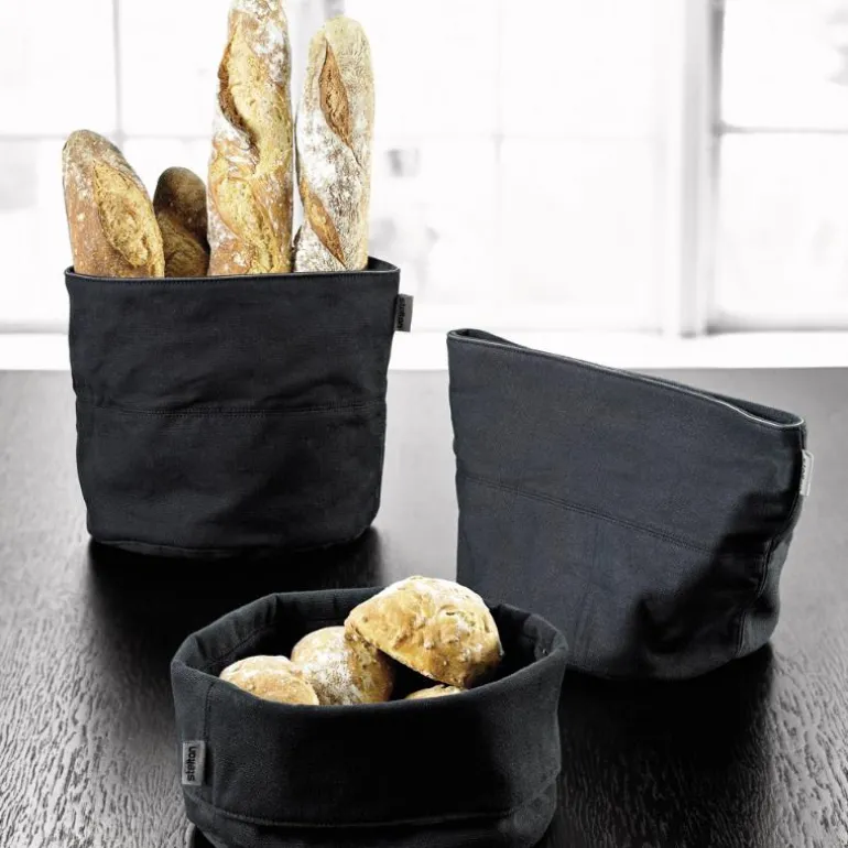Brødposen, Classic 21 x 23 cm i svart, fra Stelton er dekorativ, romslig, og tar liten plass når den ikke er i bruk. Kombinasjonen av det konsistente designet, ulike fargekombinasjoner og mange bruksmuligheter har gjort Stelton-brødposen til en bestselger.