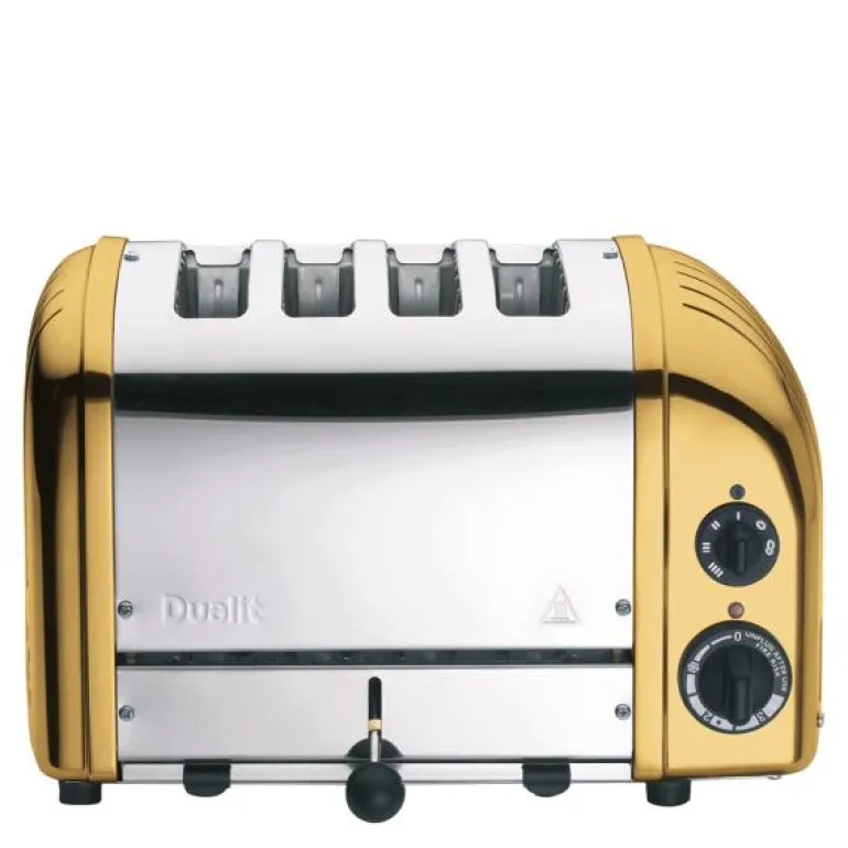 Classic brødrister 4 skiver messing, brødristerens Rolls Royce. En stilren og elegant rister fra Dualit med høy kvalitet – designet og bygget for livstid. Maskinene monteres for hånd i England slik de har blitt fra dag en. Det finnes reservedeler til hele maskinen som enkelt kan skiftes ut ved behov. Dualit anses å være en av verdens beste produsenter av brødristere.