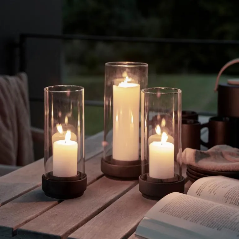 Stilren lyslykt som kan brukes alene eller i gruppe med flere. Passer både til bruk ute og inne hele året. Passer til kubbelys med dm. under 6,7 cm., telys og kronelys. Gjennomtenkt design av Maria Berntsen, som sikrer at regnvann renner ut av lykten. Høyde: 29 cm, bredde: 13,5 cm. Rengøres med varmt vann og evt. mildt oppvaskemiddel