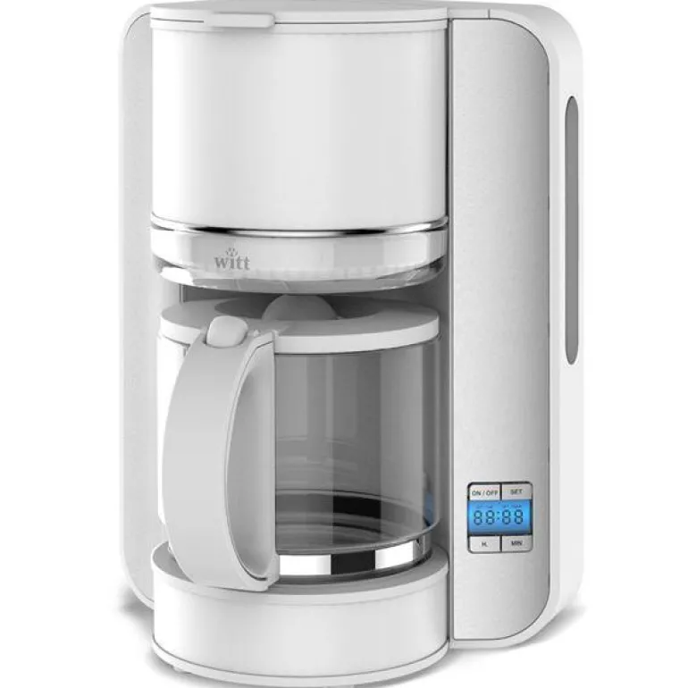 Kvalitetskaffemaskin i tidløst design med detaljer i rustfritt stål. 1,5 liters kapasitet / 12-15 kopper, 1080 Watt, Programmerbar timer med digitalt display, Uttakbar filterholder, Vannivåindikator, Dryppsikker ventil.
