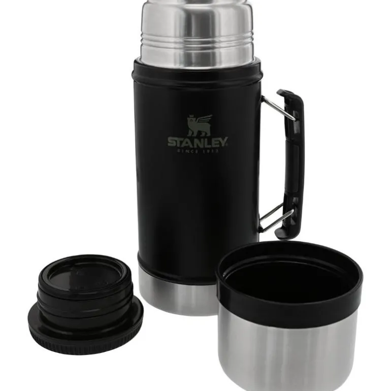 Klassisk termos til å ha mat eller drikke i fra Stanley. Den passer perfekt til eksempelvis varme supper, pølser eller gryter. Termosen har en ekstra stor åpning slik at den er enkel å fylle/tømme. Den medfølgende koppen er stor og praktisk. Korken er lett å skru på, og er garantert lekkasjefri. Termosen holder innholdet varmt i 15 timer eller kaldt i 18 timer. Termosen tåler oppvaskmaskin, er laget i kraftig rustfritt stål, og er naturlig BPA- fri. Stanley som merke har en rik historie på over 100 år. Stanley termosen ble funnet opp av William Stanley Jr., som for alltid forandret måten varme drikker ble oppbevart og konsumert, i 1913. Han kombinerte vakuum isolasjon og styrken av stål i en portabel flaske da han oppfant ståltermosen vi kjenner og elsker i dag. I århundret etter, har hans termos utviklet seg fra konsept til ikon og blitt en essensiell del av arbeidsdagen, reiser og friluftsliv.