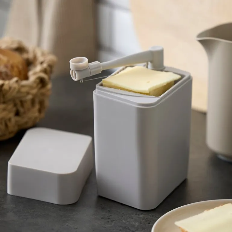 Classic osteboks humus fra Rosti. Osteklokken med integrert osteskjærer gir deg både hygienisk oppbevaring og bruk uten at du behøver å røre ved osten. For hver skive du skjærer, trekkes bunnen oppover slik at osten hele tiden er klar til den neste som har lyst på noe godt. Skjærestrengen kan byttes hvis det blir nødvendig.