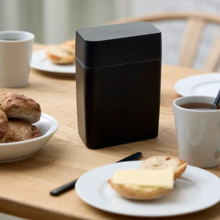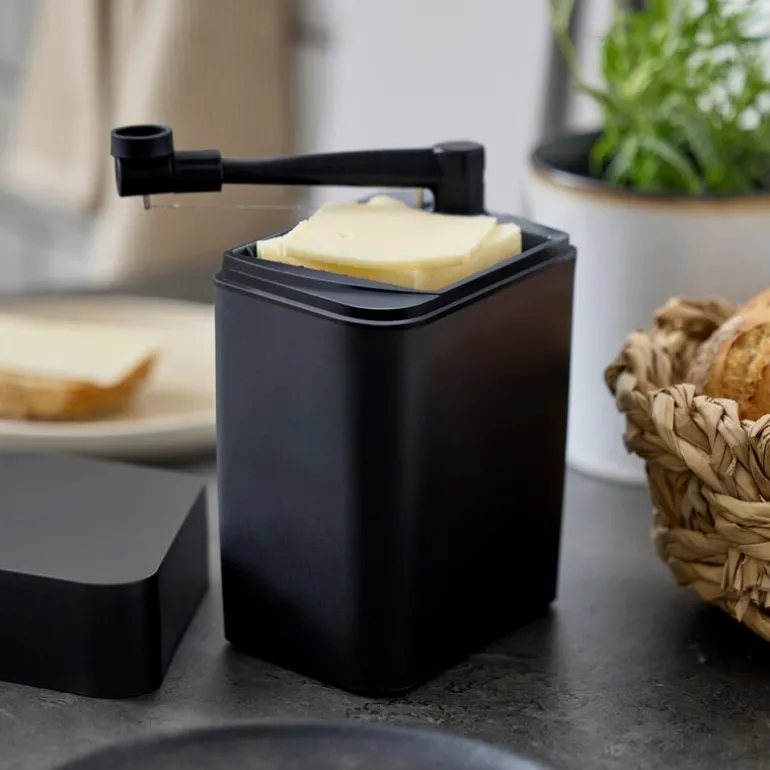 Classic osteboks svart fra Rosti. Osteklokken med integrert osteskjærer gir deg både hygienisk oppbevaring og bruk uten at du behøver å røre ved osten. For hver skive du skjærer, trekkes bunnen oppover slik at osten hele tiden er klar til den neste som har lyst på noe godt. Skjærestrengen kan byttes hvis det blir nødvendig.