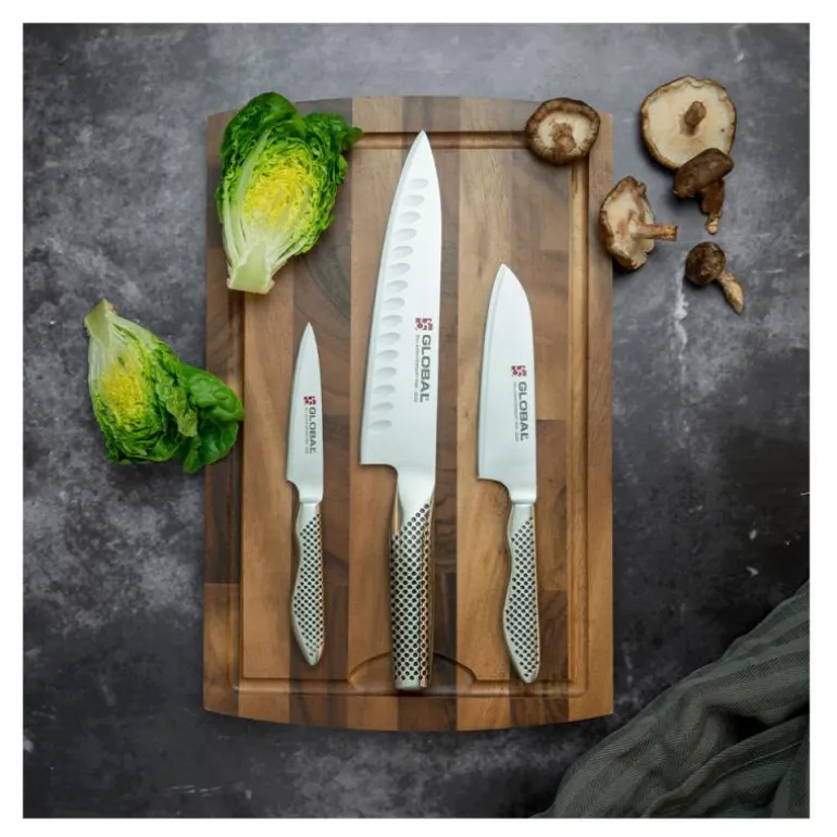 Bruk et underlag som er skånsom mot kniven, f.eks. Globals skjærebrett laget av tre, plast eller sukkerrør. Det er viktig at flaten er myk. Hvis skjærebrettet er hardere enn kniven, kan kniven bli skadet.