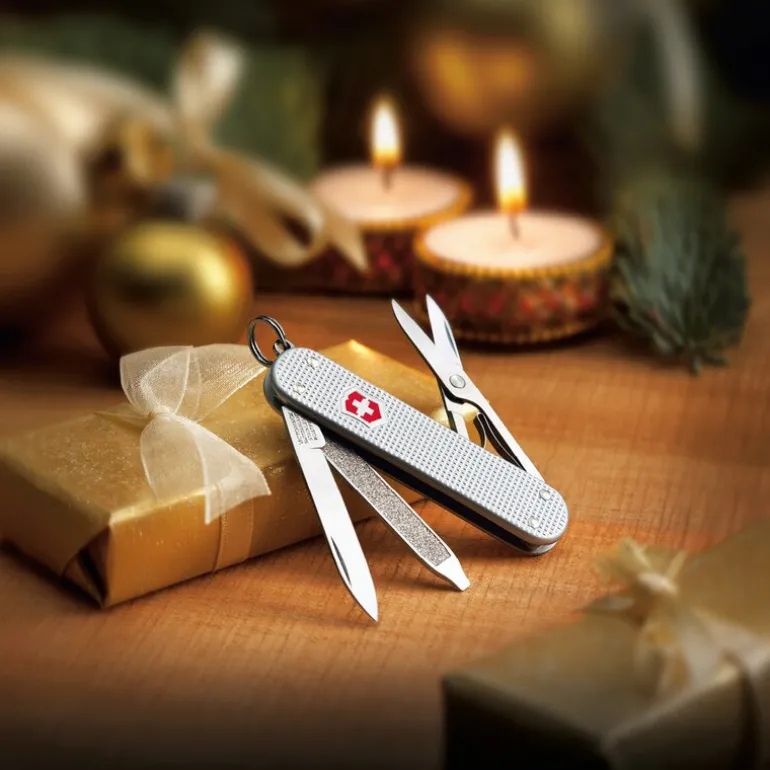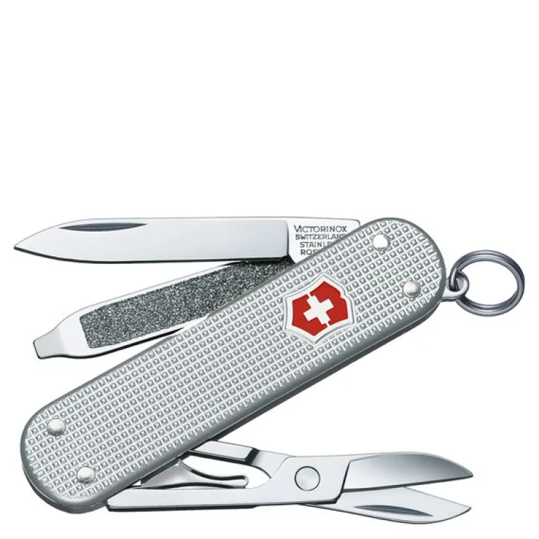 Victorinox Classic SD i «Silver Barleycorn»-utførelse er en kompakt lommekniv med fem nyttige funksjoner. Det pregete Alox-skallet gir både stil og slitestyrke, mens kniv, saks og neglefil gjør den anvendelig i mange situasjoner.