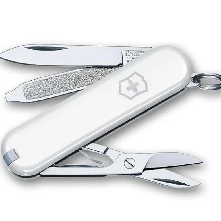 Victorinox lommekniv Classic hvit 58mm med 7 funksjoner inkludert knivblad, neglefil, saks og skrutrekker. Kniven er i rustfritt stål med deksler i plast.Victorinox er et gammelt kvalitetsmerke på kniver fra Sveits.Det begynte med de verdensberømte Swiss Army Knives og produserte etterhvert kniver både til profesjonellt bruk og til hobby kokker.Victorinox har fokus på kvalitet, innovasjon og tradisjon.
