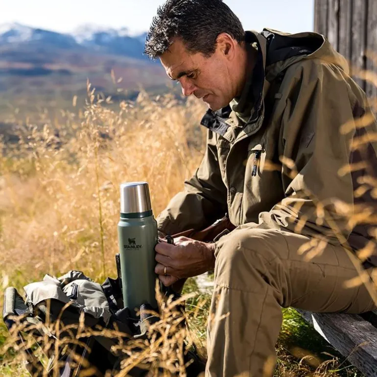 Den grønne termosen fra Stanley, Classic Termos 1L, holder på varmen i opptil 24 timer og er garantert lekkasjefri. En robust og pålitelig termos som gjerne blir med deg på tur eller på jobb.