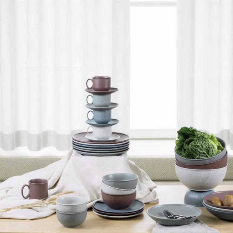 Clay kombikopp 27 cl smoke fra Thomas. Thomas Clay imponerer med sin funksjonalitet og den naturlige følelsen av steintøy. Den rillede strukturen og de svarte flekkene i materialet gir en autentisk karakter med et håndlaget utseende. Årsaken til prikkene i glasuren er jerninnslag som smelter under brenneprosessen og gir keramikken det spesielle utseende.
