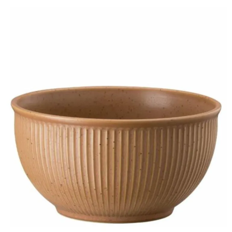 Clay skål 13cm earth fra Thomas. Thomas Clay imponerer med sin funksjonalitet og den naturlige følelsen av steintøy. Den rillede strukturen og de svarte flekkene i materialet gir en autentisk karakter med et håndlaget utseende. Årsaken til prikkene i glasuren er jerninnslag som smelter under brenneprosessen og gir keramikken det spesielle utseende.