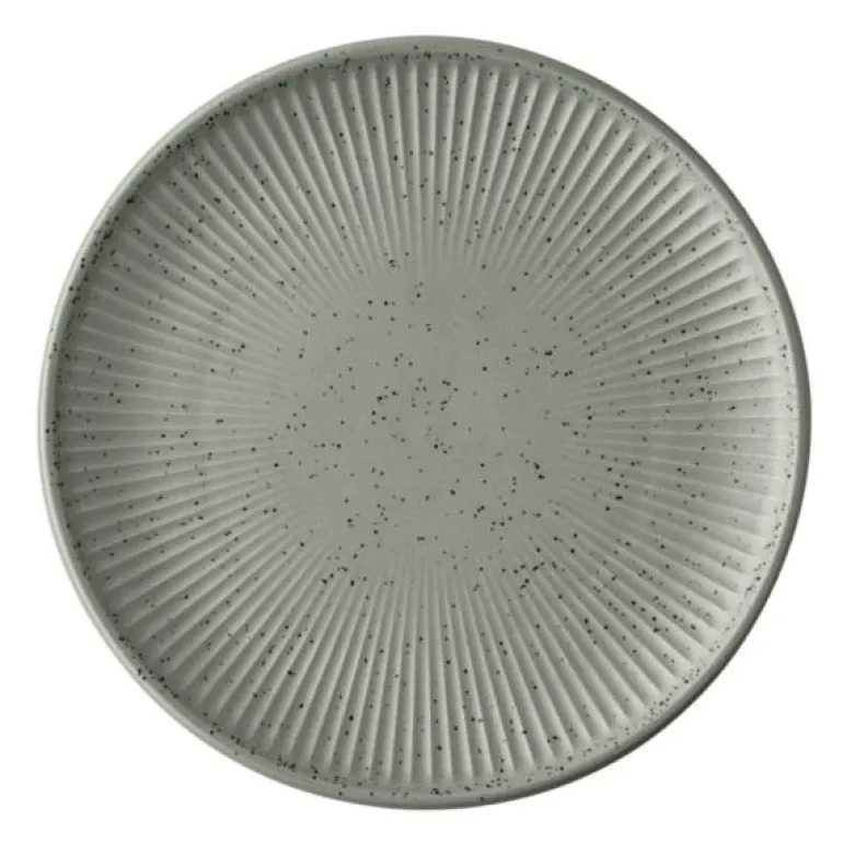 Clay tallerken 16 cm smoke fra Thomas. Thomas Clay imponerer med sin funksjonalitet og den naturlige følelsen av steintøy. Den rillede strukturen og de svarte flekkene i materialet gir en autentisk karakter med et håndlaget utseende. Årsaken til prikkene i glasuren er jerninnslag som smelter under brenneprosessen og gir keramikken det spesielle utseende.