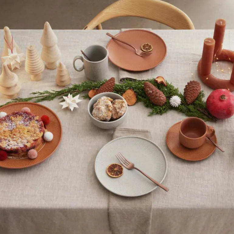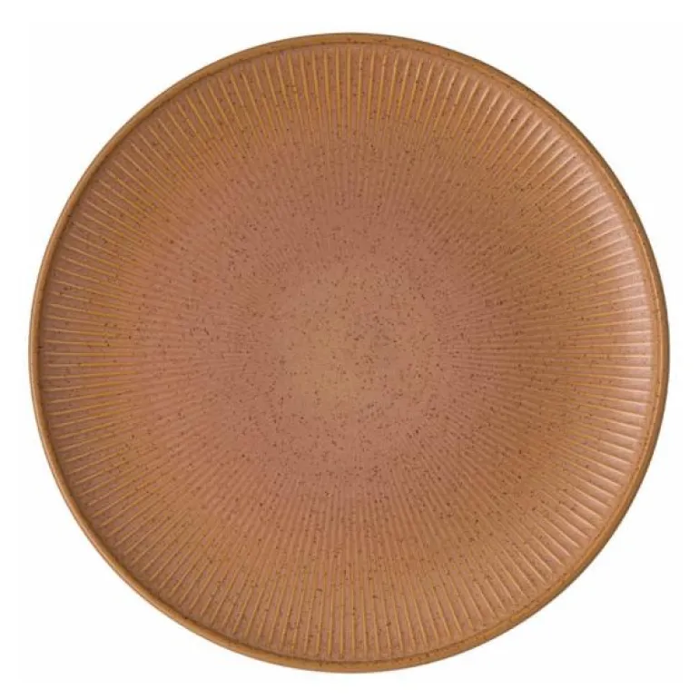 Clay tallerken 27 cm earth fra Thomas. Thomas Clay imponerer med sin funksjonalitet og den naturlige følelsen av steintøy. Den rillede strukturen og de svarte flekkene i materialet gir en autentisk karakter med et håndlaget utseende. Årsaken til prikkene i glasuren er jerninnslag som smelter under brenneprosessen og gir keramikken det spesielle utseende.