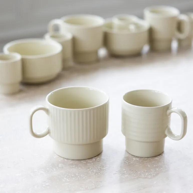 De detaljerte relieffmønstrene og linjene tilfører en hjemmekoselig og innbydende følelse, og den generøse størrelsen gjør krusene ideelle for din daglige kopp te. Stablefunksjonen gjør dem praktiske å oppbevare.