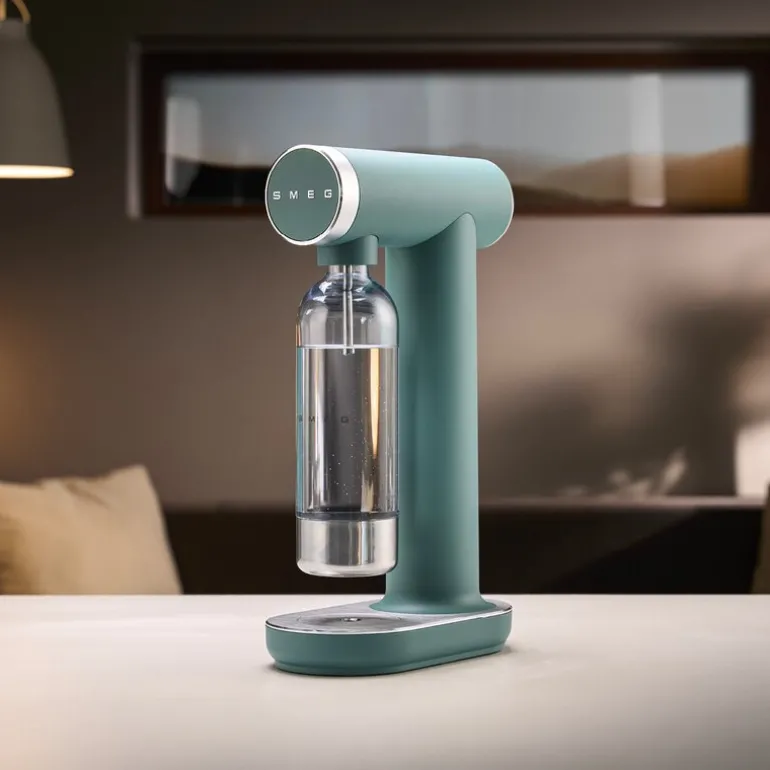 Collezione SKC01 emerald green kullsyremaskin fra Smeg gir deg muligheten til å lage kullsyreholdige drikker hjemme, akkurat slik du ønsker det. Den smarte dreieknappen lar deg enkelt justere kullsyrenivået etter smak – fra lett perlende til kraftig sprudlende. Maskinen fungerer med de fleste skrubare CO₂-sylindere (400–425 g / 60 l) og krever ingen installasjon. Det gjør det enkelt å komme i gang – fyll flasken, tilsett kullsyre og nyt en frisk og boblende drikke på sekunder.