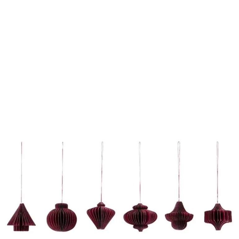 Comb juletrepynt fra House Doctor i bordeaux er et sett med seks vakre papirpynt som tilfører juledekorasjonen din et klassisk og elegant preg. Med seks forskjellige mønstre tilbyr disse ornamentene en nydelig variasjon som gir dekorasjonen din et sofistikert uttrykk. Den dyprøde burgunderfargen er en tidløs juleklassiker som gir en varm og festlig følelse, perfekt for å komplementere både tradisjonell og moderne innredning.
