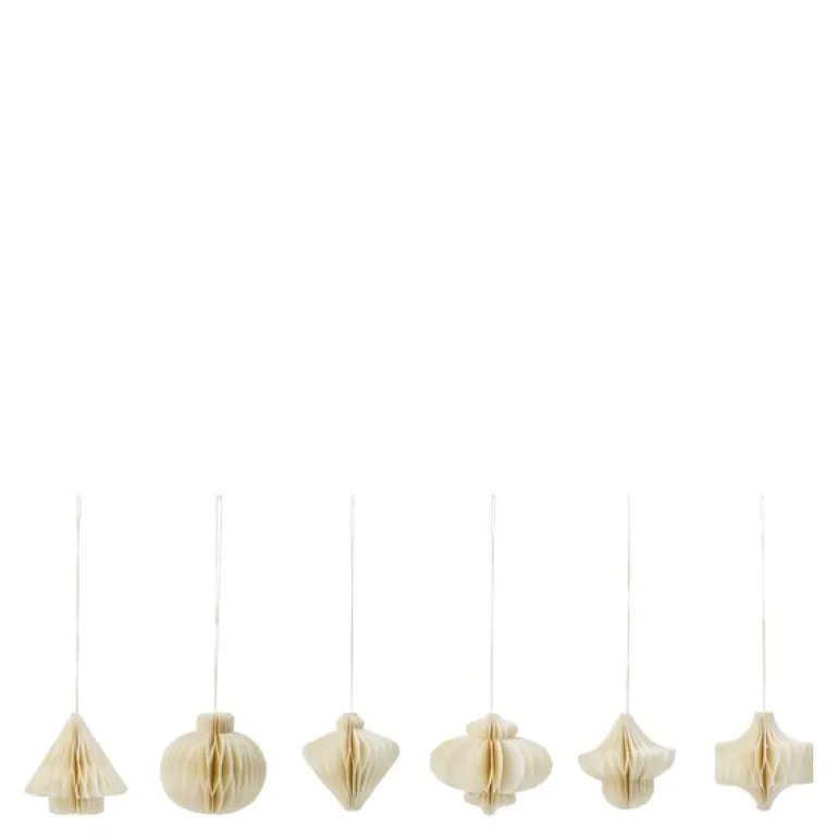 Comb juletrepynt fra House Doctor er et sett med seks stilige papirpynt som gir en avslappet og elegant touch til julepynten din. I en myk off-white farge og med seks forskjellige mønstre skaper disse dekorasjonene en subtil variasjon som gir treet et rolig og vinterlig preg. De er perfekte å blande med andre dekorasjoner som julekongler og tradisjonelle kuler for et personlig og unikt utseende. Bruk dem i juletreet, heng dem på en gren i en vase eller pynt en vegg for å spre en stemningsfull atmosfære i hjemmet ditt.