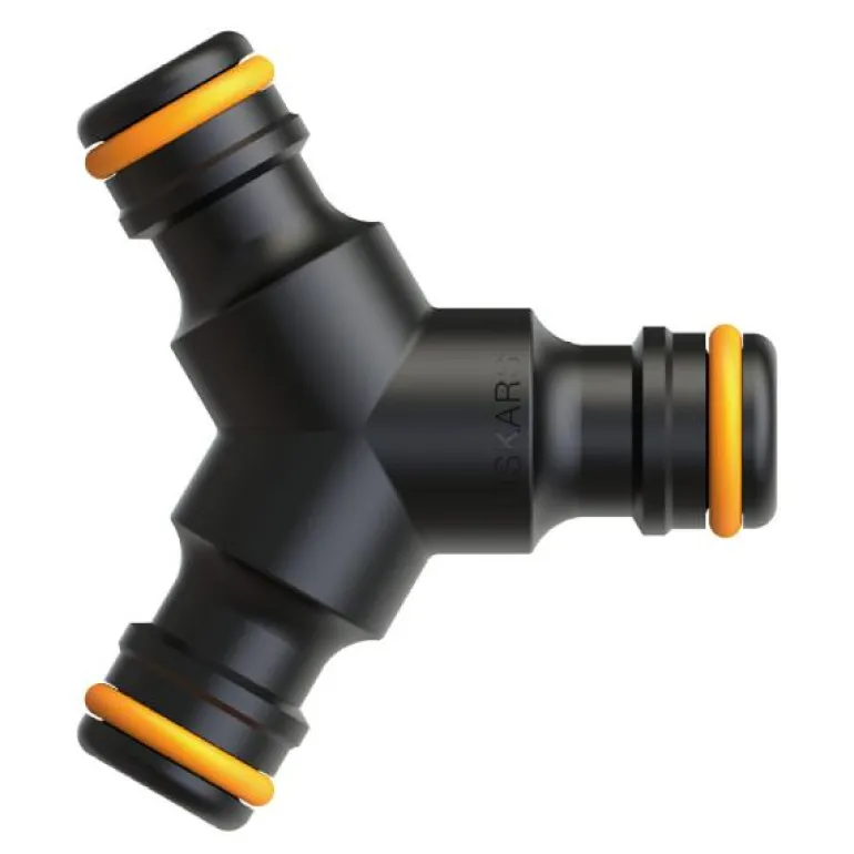 Comfort 3-veis Y-kobling til vannslange fra Fiskars. For enkel forgrening av vannslangen. Standardkobling – Kompatibel med andre produsenter.