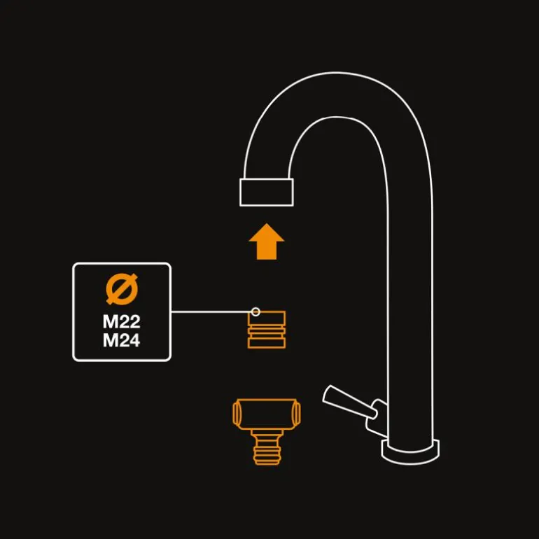 Comfort kranadapter innendørskran 13,6 cm svart fra Fiskars. Krantilkobling for tilkobling av vannslange til innendørskran. Standardkobling – Kompatibel med andre produsenter.