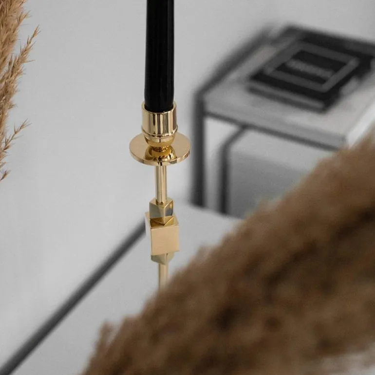 En eksklusiv og håndlaget lysestake i gull/messing med 3 terninger, fra Hilke Collection. Como lysestaken er en håndlaget lysestake med moderne og stilrent design. Den er laget av messing eller nikkelbelagt messing og skiller seg ut både alene og i kombinasjon med andre lysestaker. Hilke Collection AB/CL i samarbeid med designeren og interiørkonsulenten Åsa Ingrosso har utviklet denne lysestaken som leveres i en gaveeske og er en perfekt gave!