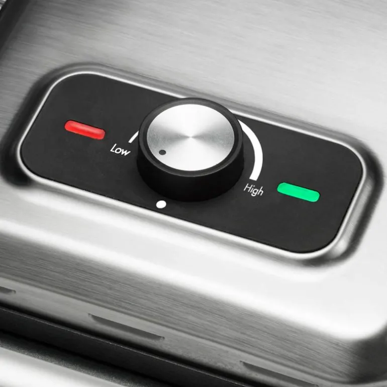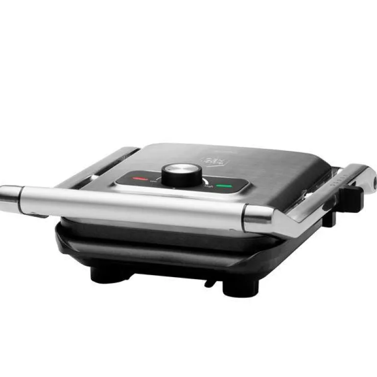 Kompakt grill og smørbrødgrill i børstet rustfritt stål. Dobbeltsidig grilling med justerbar temperatur som gir smakfull grillmat og panini. Grillplater med non-stick-belegg gir et jevnt grillresultat. Avtakbart dryppbrett og skrape for enkel rengjøring. Kan oppbevares stående for å spare plass.