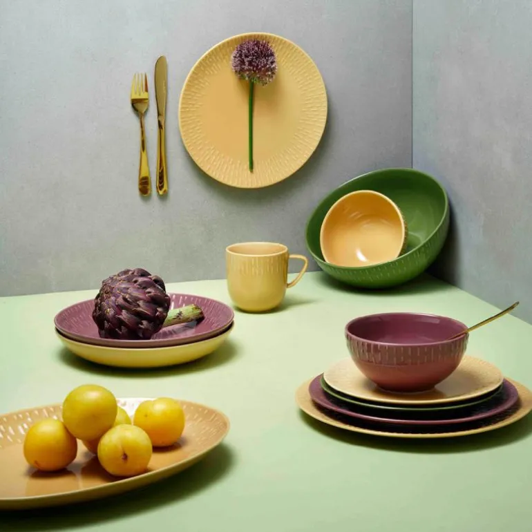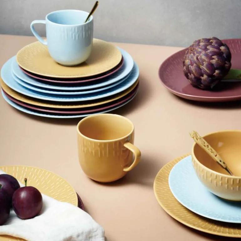 Middagstallerken 27,5 cm i fargen Mustard fra Confetti serien til Aida – Life i Colour. Confetti er et lekent og humørfylt servise som er en del av Aidas «Life in colour» konsept. Serviset kommer i 8 deler, og hele 10 farger, og er laget nettopp for å kunne mikse farger og deler som du selv ønkser.