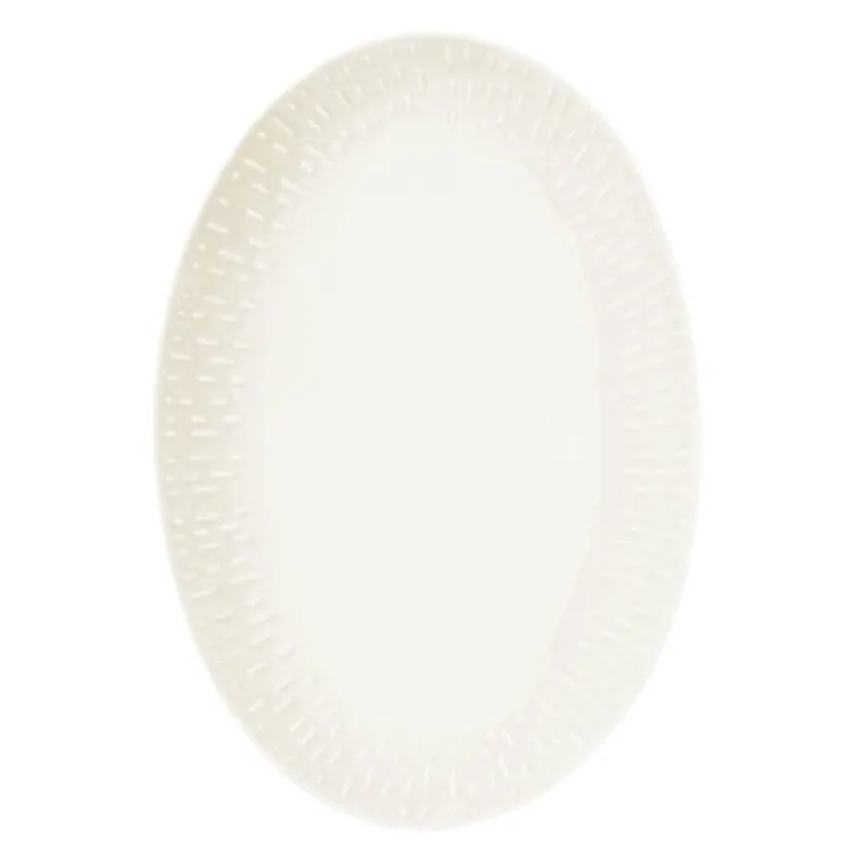 Confetti ovalt fat i vanilla fra Aida måler 36 x 25,5 cm og er et naturlig valg for servering, enten det er til hverdag eller fest. Med sitt elegante design og praktiske størrelse gjør dette fatet det enkelt å presentere alt fra småretter til større serveringer. Fatet er dekorert med et subtilt relieff langs kanten, som skaper et spill i den fargede glasuren og tilfører et delikat uttrykk.