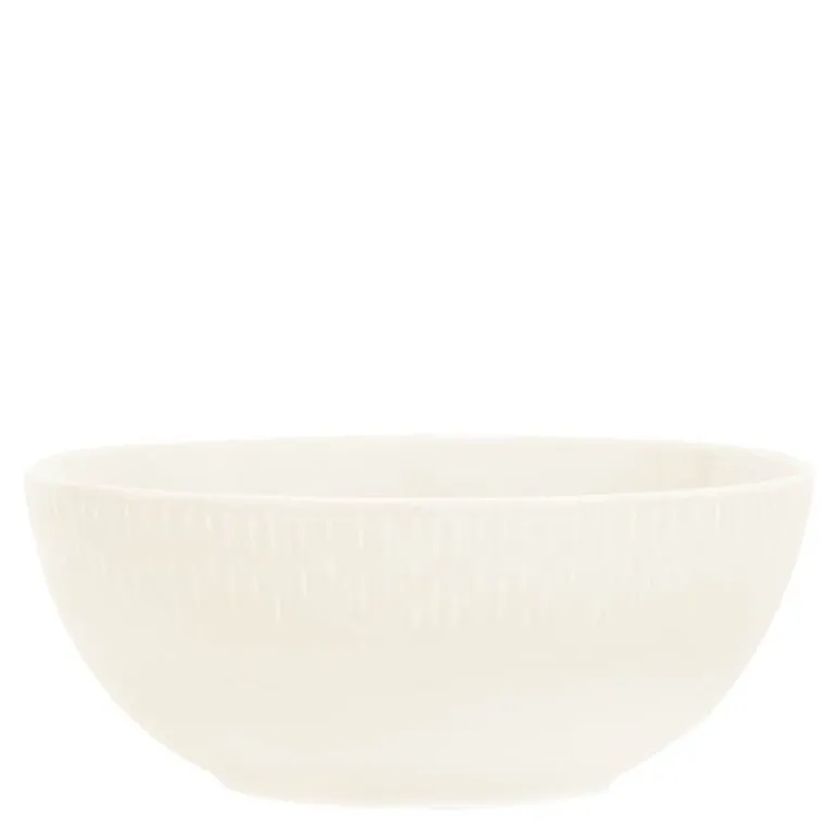 Confetti salatskål i vanilla fra Aida er en allsidig serveringsskål med en diameter på 23 cm. Enten du blander en frisk salat, serverer poteter eller lager en sommerlig dessert, er denne skålen et praktisk og stilrent innslag på bordet. Med sitt subtile relieff langs kanten skaper den et vakkert spill i glasuren, samtidig som porselenets hvite base skinner gjennom for et elegant uttrykk.